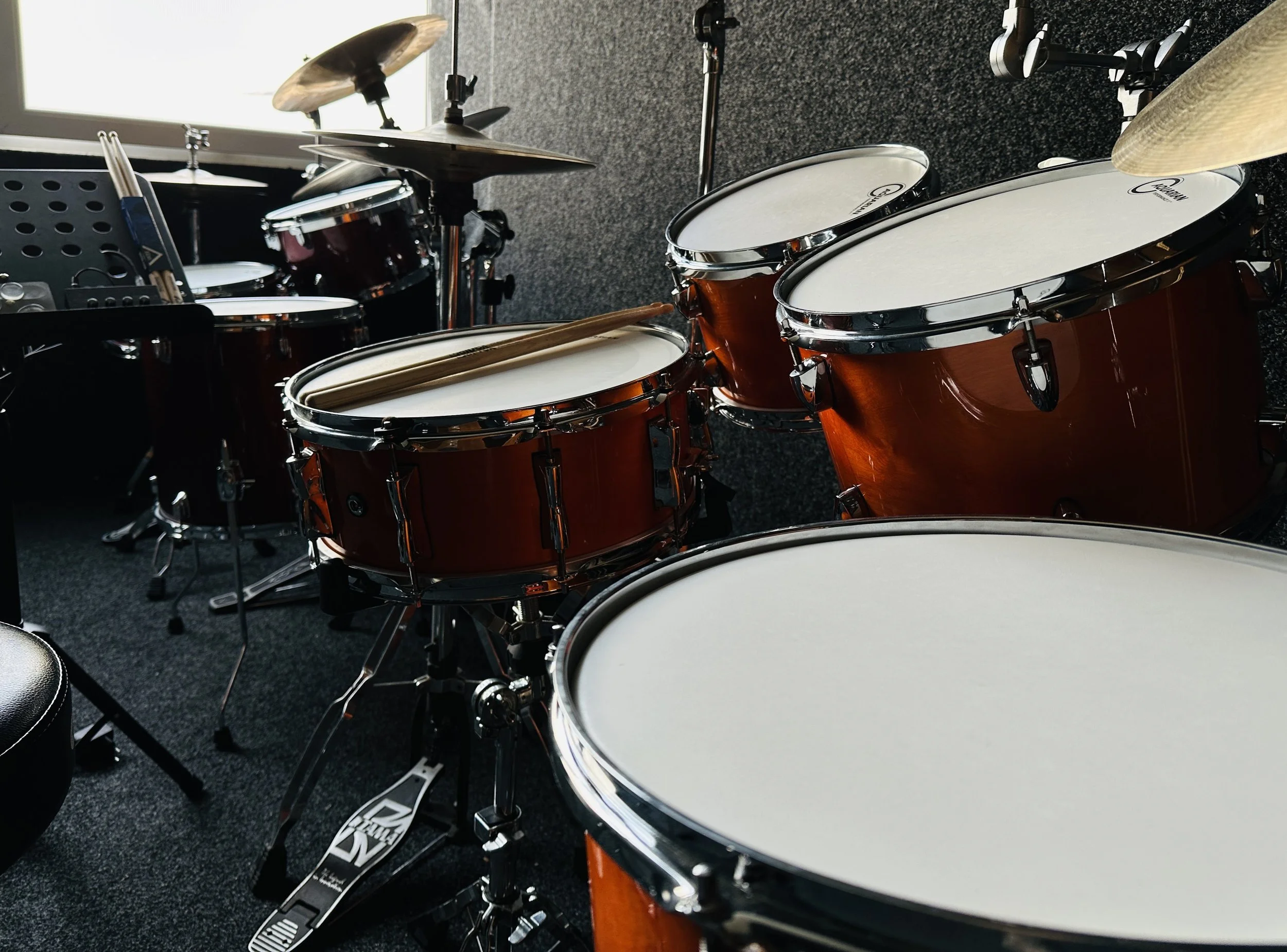 Whether you want to learn to play drums for fun, relaxation after a day in the office or to join your mates in a band, we guarantee maximum fun during the lessons. Coffee, soft drinks, tea included. The studio has two pro drum kits and the lessons are focused on instrument practice. Practice pad is for home use. We want to make noise, not to hit rubber with sticks :) .